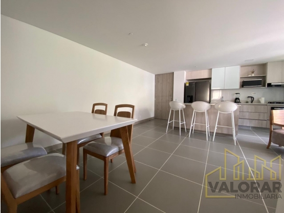Venta de apartamento en Envigado, sector La Abadía. Cuenta con un área de 91,9 metros, 3 habitaciones, cocina integral con barra, 2 baños, vestier, zona social, balcón, zona de ropas independiente, parqueadero doble lineal, cuarto util.